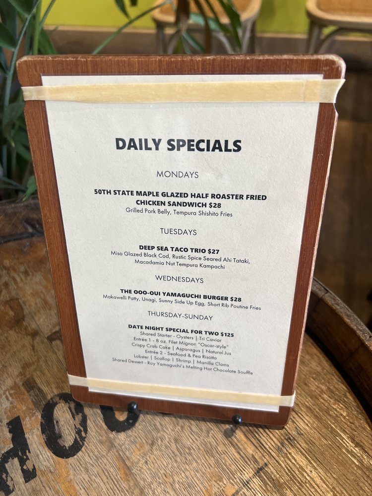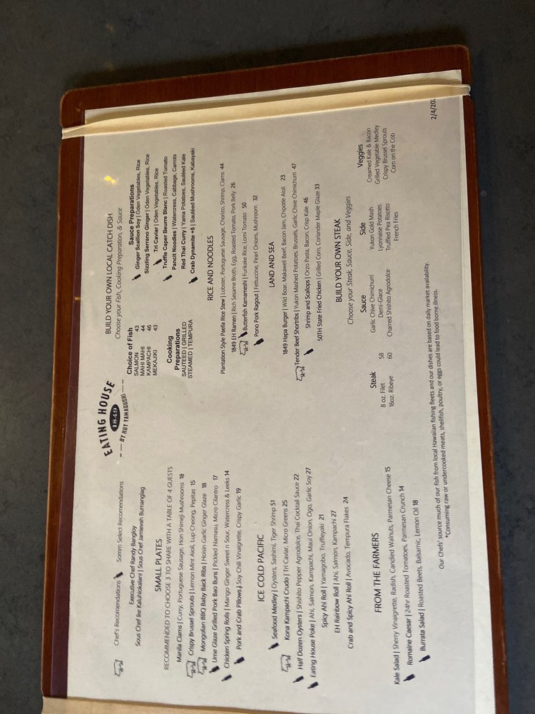 Start your culinary journey with enticing small plates like Chicken Spring Rolls and Pork And Crab Pillows. For the main event, indulge in the Tender Beef Short Ribs or explore the unique Hapa Burger featuring wild boar and Makaweli beef. Don't miss the chance to savor the stunning Market Catch Mahi Mahi, perfectly grilled to maintain its moisture and flavor.